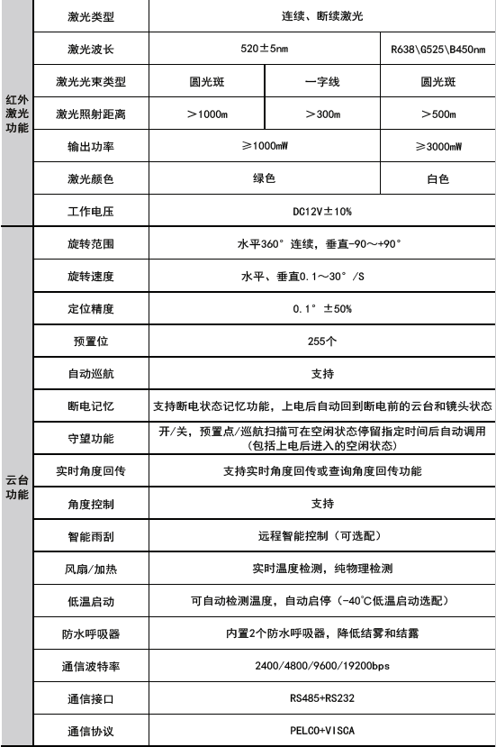 激光波长520nm/532nm 激光功率可定制 照射距离1000米左右