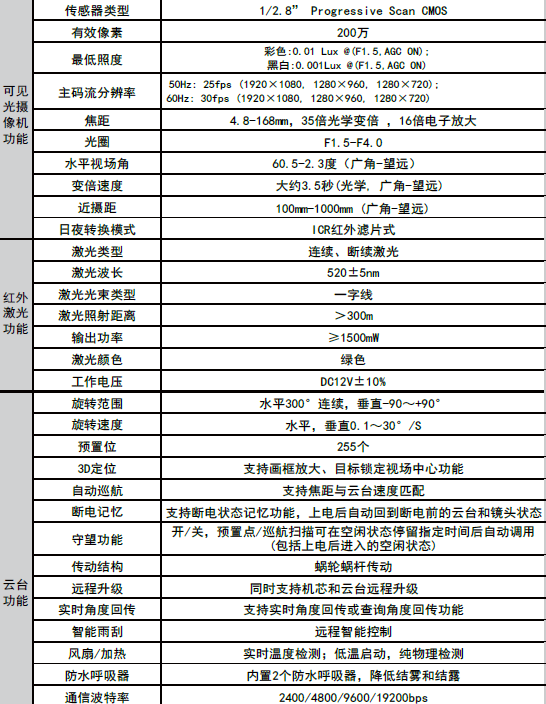 激光波长520nm/532nm 激光功率可定制 照射距离600-2000米